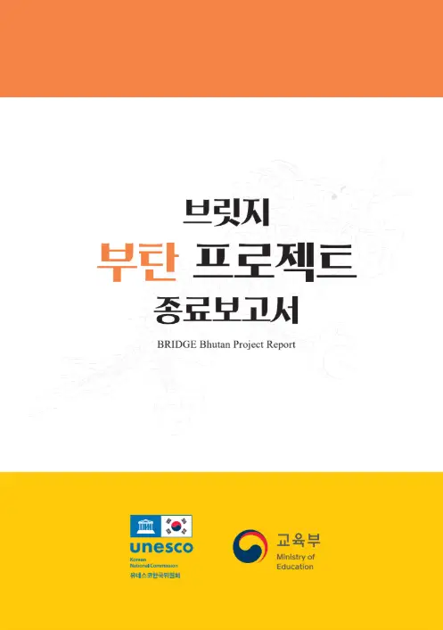 유네스코한국위원회는 2015–2024 브릿지 부탄 프로젝트 종료보고서를 발간했습니다. 이번 보고서는 지난 10년간 유네스코한국위원회와 부탄 정부가 협력해 추진한 브릿지 부탄 프로젝트의 최종 성과와 의미를 정리하고, 비형식 교육을 통한 지역사회 변화와 지속가능한 교육 확산의 경험을 담고 있습니다. 이 보고서는 부탄 현장에서의 교육 기회 확대와 협력의 발자취를 되짚으며, 향후 글로벌 교육 협력의 방향을 제시하는 중요한 자료입니다.
