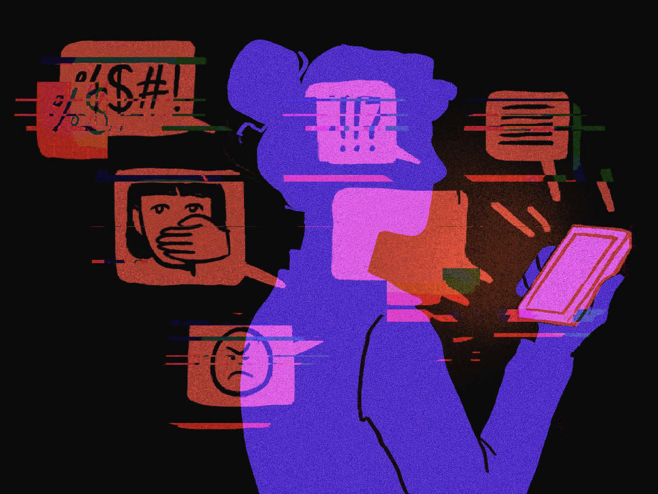 룸먼 초우두리가 참여한 유네스코 보고서 『"Your opinion doesn’t matter, anyway": exposing technology-facilitated gender-based violence in an era of generative AI』의 표지 일러스트 |